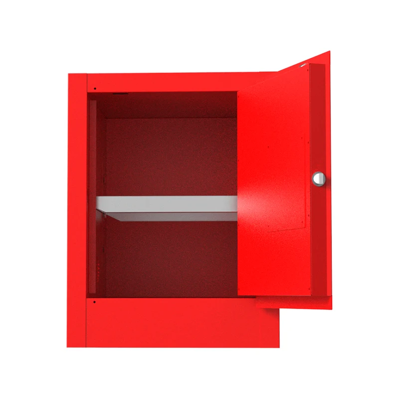 Το ντουλάπι αποθήκευσης εύφλεκτης χημικής ασφάλειας είναι κατασκευασμένο με δομή από χάλυβα διπλής στρώσης, η οποία ενισχύει σημαντικά τη δύναμη και τη σταθερότητα του σώματος του ντουλαπιού. Στη βιομηχανική παραγωγή, όταν αντιμετωπίζουμε συχνούς χειρισμούς και συγκρούσεις, μπορεί να παρέχει αξιόπιστη φυσική προστασία για τις εύφλεκτες χημικές ουσίες που είναι αποθηκευμένες στο εσωτερικό, αποτρέποντας πιθανούς κινδύνους που προκαλούνται από τη διαρροή εύφλεκτων αντικειμένων λόγω ζημιάς στο ντουλάπι. Είναι κατάλληλο για χώρους όπως αποθήκες χημικών πρώτων υλών.